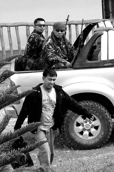 2107_60529108328_960_nDue to the bigger hotel being fully booked, we had to stay in a small hotel that resembled a place that was left in the 70’s. I had imaginations of a CIA agent sitting in the corner of the same coffee shop wearing a red hawaiian shirt, dark wayfarers with a Pina Colada in one hand and a newspaper in the other. To make things worse, we were advised to leave post-haste in a white van that drove for more than an hour to a safe house to change into another vehicle which turns out to be a convoy of large pick-up trucks with the backs loaded with heavily armed men in fatigues. Off we went with a huge cloud of dust behind us as we were careening at the sides of a twisted mountain trail at full speed. There was an eerie silence in the car which is not typical of Filipinos (usually full of chatter and laughter) while I was accompanied by a young British colleague who came with me on my field assessment. We passed several military checkpoints which seemed customary to most in my company, but unsettling for me and the rest of the team. I was texting my wife for updates on how I was, still alive but not knowing exactly where I was. I was scared and as I looked at the phone, the bars which signified the signal and my connection to the rest of my life was getting lower and lower as we went deeper and deeper into the woods. The signal went down to zero and I felt like my lifeline to the rest of civilization was severed. What if something happened? Anything could happen! We could have been ambushed or kidnapped but then who would know? As I was clutching on to my phone, I sighed with fervent prayer saying: let me be OK. After that, a thought: “What am I doing? How did I get here?”